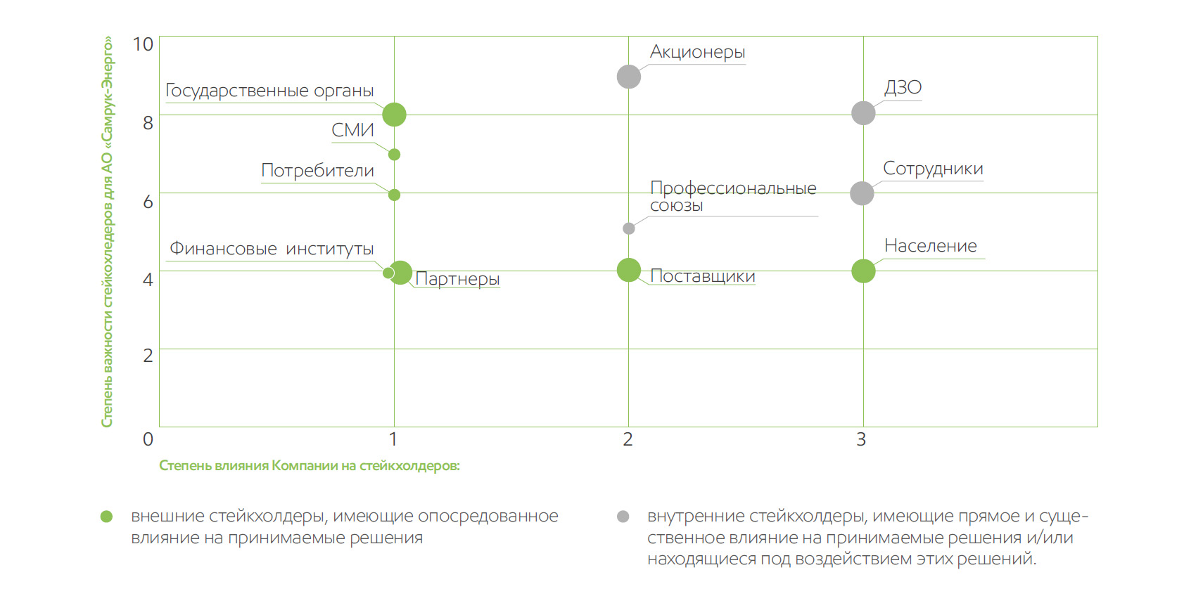 Благодаря активному взаимодействию с нашими заинтересованными сторонами, мы смогли успешно определить приоритетные существенные вопросы, и вытекающую последовательность в распределении ресурсов и времени именно на те виды деятельности, где мы можем оказать или уже оказываем наибольшее влияние.