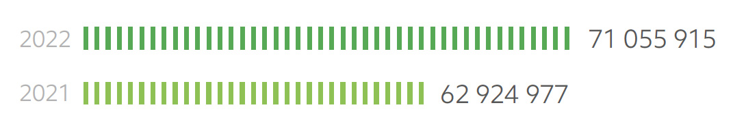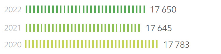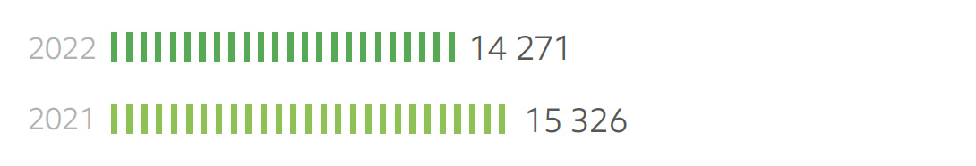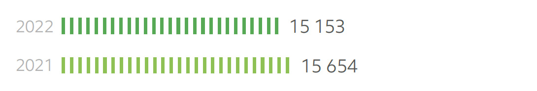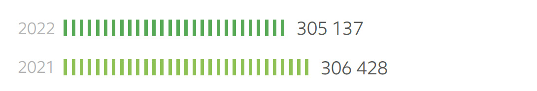 Общее потребление энергии в 2022 году уменьшилось на 3,2% по сравнению с предыдущим годом. Потребление электрической энергии по итогам 2022 года снизилось по отношению к прошлому году на 2%, существенно снизилось потребление тепловой энергии – на 7%.